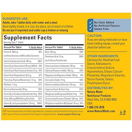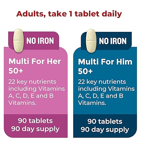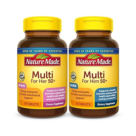 Thông tin sản phẩm Nature Made Multivitamin 50+ His & Hers Combo Pack, Mens and Womens Multivitamin with Vitamin C, Vitamin D3, B Vitamins, Zinc & More, Two Multivitamin Bottles