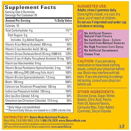 Thông tin sản phẩm Nature Made Multivitamin For Women, Womens Gummy Multivitamins for Daily Nutritional Support, 150 Multi Vitamin Gummies, 75 Day Supply