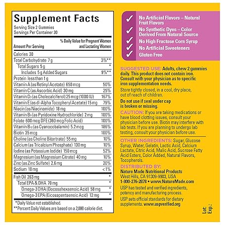 Thông tin sản phẩm Nature Made Prenatal Gummies with DHA and Folic Acid, Prenatal Vitamin and Mineral Supplement for Daily Nutritional Support, 60 Gummies, 30 Day Supply