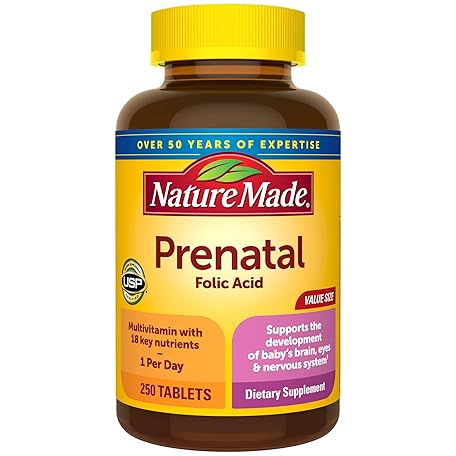 Thông tin sản phẩm Nature Made Prenatal Multivitamin with Folic Acid, Prenatal Vitamin and Mineral Supplement for Daily Nutritional Support, 250 Tablets, 250 Day Supply