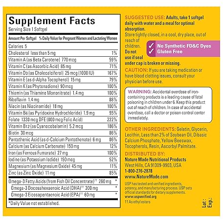 Thông tin sản phẩm Nature Made Prenatal with Folic Acid + DHA, Prenatal Vitamin and Mineral Supplement for Daily Nutritional Support, 110 Softgels, 110 Day Supply