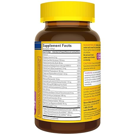 Thông tin sản phẩm Nature Made Prenatal with Folic Acid + DHA, Prenatal Vitamin and Mineral Supplement for Daily Nutritional Support, 60 Softgels, 60 Day Supply