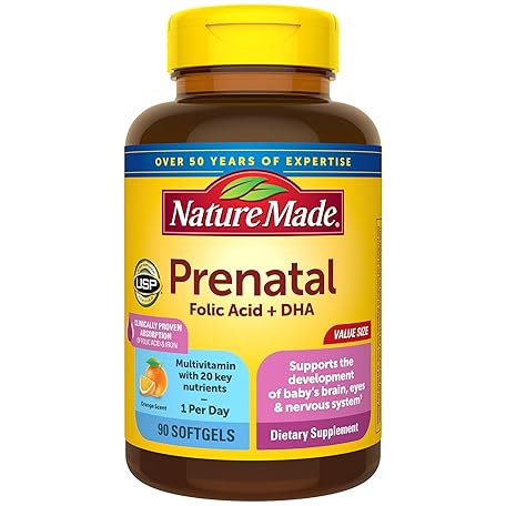 Sản phẩm Nature Made Prenatal with Folic Acid + DHA, Prenatal Vitamin and Mineral Supplement for Daily Nutritional Support, 90 Softgels, 90 Day Supply đang được bán với giá ưu đãi là $21.0588 tại nước Mỹ.