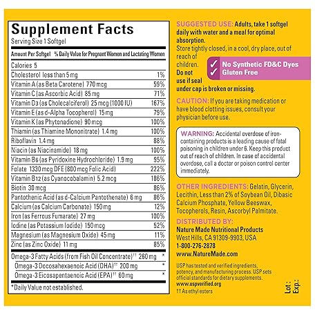 Thông tin sản phẩm Nature Made Prenatal with Folic Acid + DHA, Prenatal Vitamin and Mineral Supplement for Daily Nutritional Support, 90 Softgels, 90 Day Supply