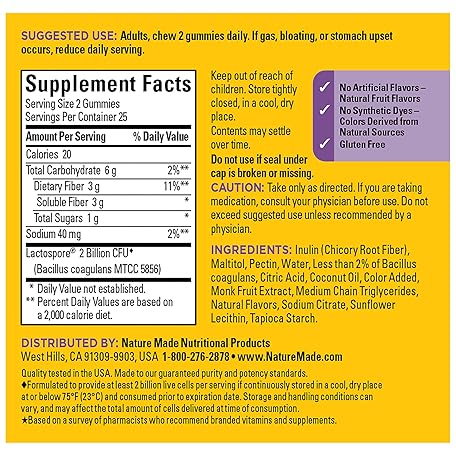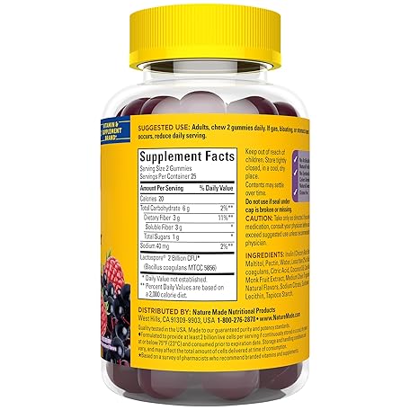 Thông tin sản phẩm Nature Made Probiotic + Prebiotic Fiber Gummies for Daily Gut Health, Digestive Support Supplement with Probiotics and Fiber, 50 Gummies, 25 Day Supply
