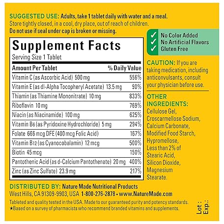 Thông tin sản phẩm Nature Made Stress B Complex with Vitamin C and Zinc, Dietary Supplement for Immune Support, 75 Tablets, 75 Day Supply