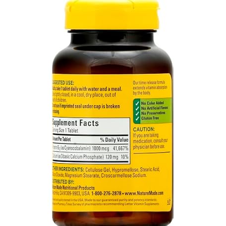 Sản phẩm Nature Made Vitamin B12 1000 mcg, Dietary Supplement For Energy Metabolism Support, 160 Time Release Tablets, 160 Day Supply đang được bán với giá ưu đãi là $11.6085 tại nước Mỹ.