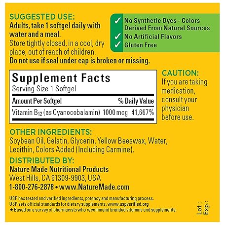 Sản phẩm Nature Made Vitamin B12 1000 mcg, Dietary Supplement for Energy Metabolism Support, 90 Softgels, 90 Day Supply đang được bán với giá ưu đãi là $10.8782 tại nước Mỹ.