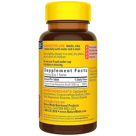 Sản phẩm Nature Made Vitamin C 500 mg, Dietary Supplement for Immune Support, 100 Tablets, 100 Day Supply đang được bán với giá ưu đãi là $6.9651 tại nước Mỹ.