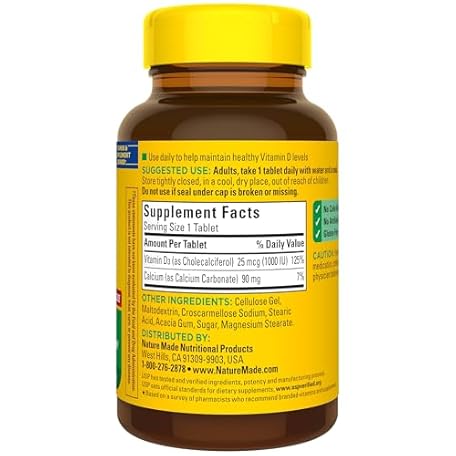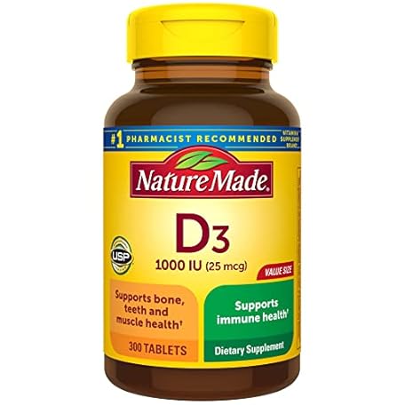 Sản phẩm Nature Made Vitamin D3 1000 IU (25 mcg), Vitamin D Supplement for Bone, Teeth, Muscle and Immune Health Support, 300 Tablets, 300 Day Supply đang được bán với giá ưu đãi là $9.8645 tại nước Mỹ.