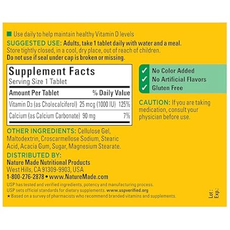 Thông tin sản phẩm Nature Made Vitamin D3 1000 IU (25 mcg), Vitamin D Supplement for Bone, Teeth, Muscle and Immune Health Support, 300 Tablets, 300 Day Supply