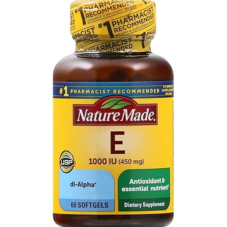 Sản phẩm Nature Made Vitamin E 450 mg (1000 IU) dl-Alpha Softgels, 60 Count for Antioxidant Support (Packaging May Vary) đang được bán với giá ưu đãi là $19.6091 tại nước Mỹ.