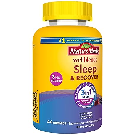 Thông tin sản phẩm Nature Made Wellblends Sleep and Recover, Sleep Aid with Melatonin 3mg to Support Restful Sleep, plus L theanine 200mg and Magnesium Citrate, 44 Gummies
