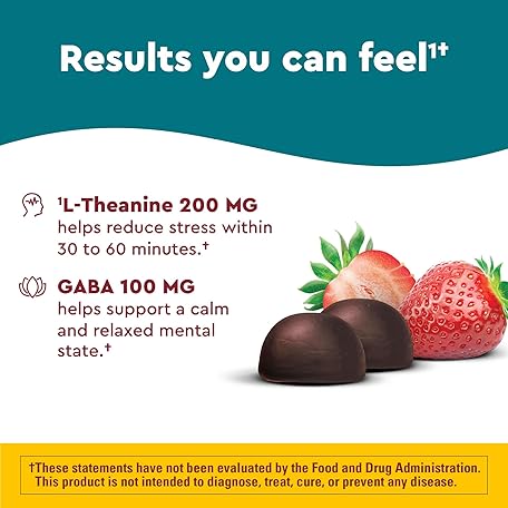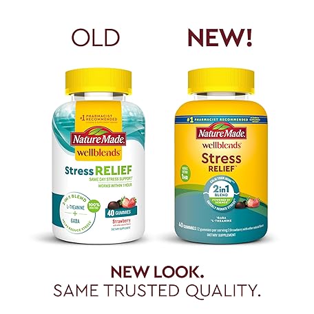 Thông tin sản phẩm Nature Made Wellblends Stress Relief Gummies, L theanine 200mg to Help Reduce Stress, with GABA 100mg, Same Day Stress Support, 40 Strawberry Flavor Gummies
