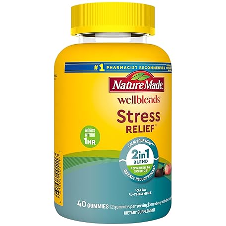 Sản phẩm Nature Made Wellblends Stress Relief Gummies, L theanine 200mg to Help Reduce Stress, with GABA 100mg, Same Day Stress Support, 40 Strawberry Flavor Gummies đang được bán với giá ưu đãi là $10.8673 tại nước Mỹ.