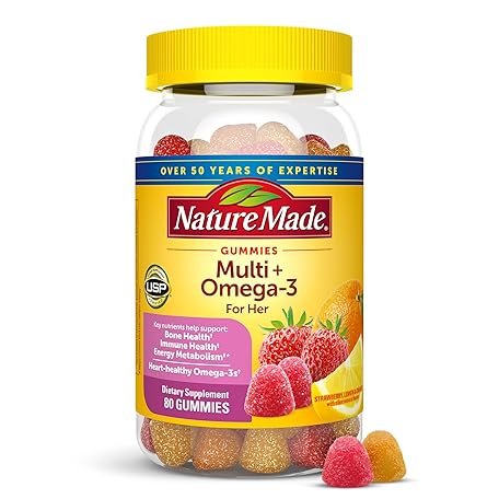 Sản phẩm Nature Made Womens Gummy Multivitamins with Omega-3, Multivitamin for Women for Daily Nutritional Support, 80 Gummies, 40 Day Supply đang được bán với giá ưu đãi là $9.9626 tại nước Mỹ.