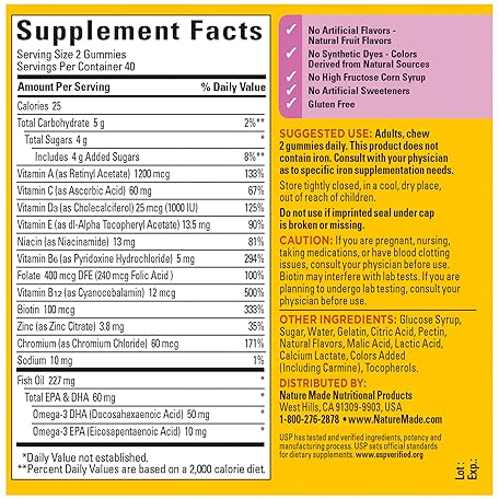 Thông tin sản phẩm Nature Made Womens Gummy Multivitamins with Omega-3, Multivitamin for Women for Daily Nutritional Support, 80 Gummies, 40 Day Supply