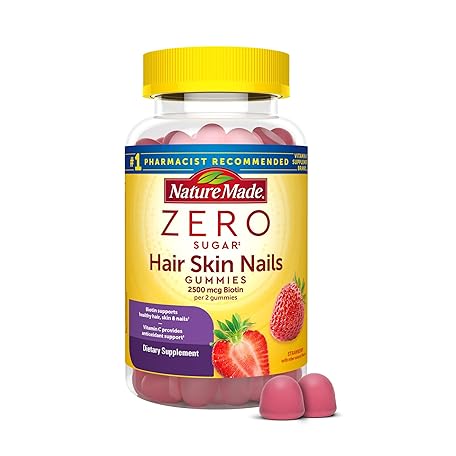 Sản phẩm Nature Made Zero Sugar Hair Skin Nails Gummies, Biotin 2500 mcg per Serving, 120 Sugar Free Gummies, 60 Day Supply đang được bán với giá ưu đãi là $12.3061 tại nước Mỹ.