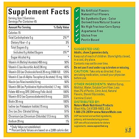 Thông tin sản phẩm Nature Made Zero Sugar Multivitamin Gummies, Mens & Womens Multivitamins, Daily Nutritional Support Vitamin and Mineral Supplement, Aspartame Free, 90 Gummies, 45 Day Supply
