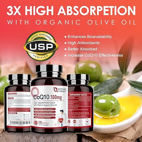 Thông tin sản phẩm NATURE TARGET CoQ10-100mg-Softgels with 10mg PQQ - High Absorption Coenzyme-Q10 with Organic-Olive-Oil - Antioxidant for Heart & Brain Health, Cellular-Energy-Production, 120 Servings
