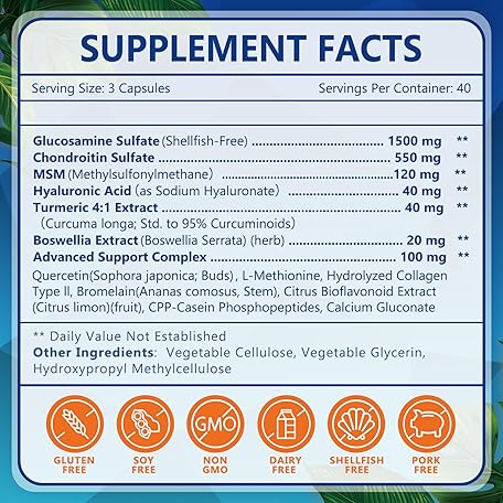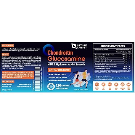 Thông tin sản phẩm NATURE TARGET Glucosamine Chondroitin MSM, Joint Support Supplement, Shellfish Free, Turmeric Boswellia, Hyaluronic Acid, Collagen, Calium for Cartilage and Bone Health,120 Capsules, 40 Servings