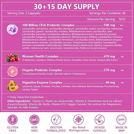 Thông tin sản phẩm NATURE TARGET Probiotics for Women, 100 Billion CFUs Probiotic with Digestive Enzymes & Prebiotics, Vaginal Probiotics with Cranberry for Urinary Tract Health, pH Balance, 90 Veggie Capsules