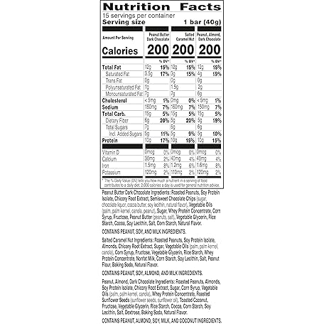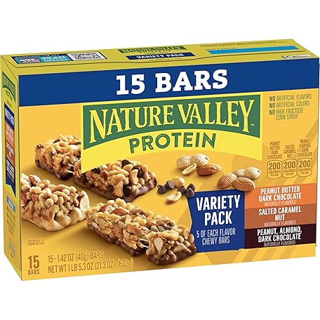 Thông tin sản phẩm Nature Valley Protein Bars Variety Pack, Gluten Free Chewy Granola Snack Bars, 10g Protein, Peanut Butter Dark Chocolate, Salted Caramel Nut, Peanut Almond Dark Chocolate, 15 Count, 21.3 oz Box
