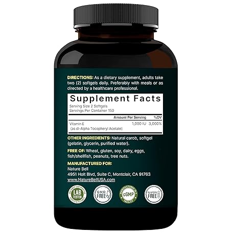 Thông tin sản phẩm NatureBell Vitamin E Oil Softgels, 1,000 IU Per Serving, 300 Pills | Essential Antioxidant Supplements, Easily Absorbed Form – Supports Skin, Heart, & Immune Health – Non-GMO