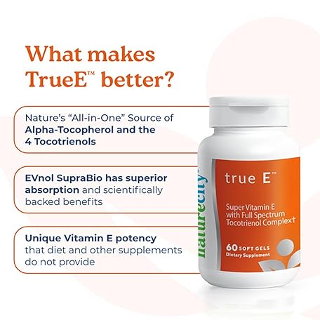 Sản phẩm NatureCity True-E Full Spectrum Tocotrienols Vitamin E & Natural Alpha Tocopherol Supplement | Sustainable Vitamin E Tocotrienols from Evnol Suprabio | Non-GMO Vitamin E Complex | 60 Soft gels đang được bán với giá ưu đãi là $27.2173 tại nước Mỹ.