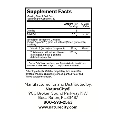 Thương hiệu NatureCity là cái tên nổi tiếng được rất nhiều khách hàng trên thế giới chọn lựa. Với kiểu dáng đẹp mắt, sang trọng, sản phẩm NatureCity True-E Full Spectrum Tocotrienols Vitamin E & Natural Alpha Tocopherol Supplement | Sustainable Vitamin E Tocotrienols from Evnol Suprabio | Non-GMO Vitamin E Complex | 60 Soft gels là sự lựa chọn hoàn hảo nếu bạn đang tìm mua một món cho riêng mình.