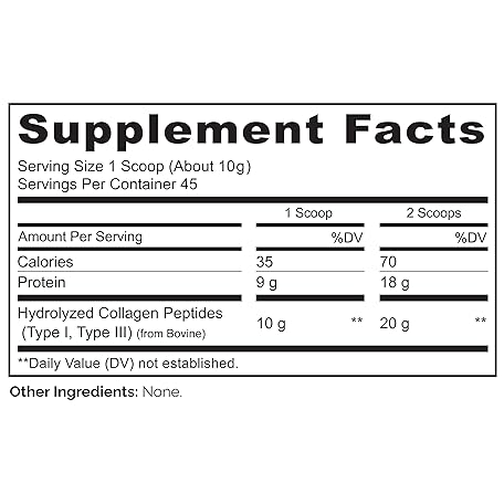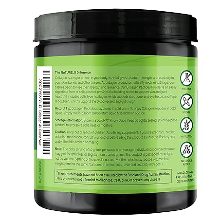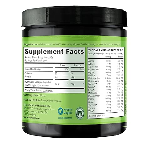 Thông tin sản phẩm NATURELO Collagen Peptide Powder, Hydrolyzed Collagen Type I & III, Skin Hair & Joint Health - Unflavored, 16 Ounces | 45 Servings