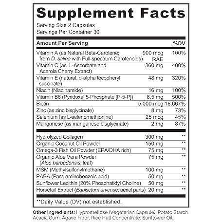 Thông tin sản phẩm NATURELO Hair, Skin and Nails Multivitamin - 5000 mcg Biotin, Collagen, Natural Vitamin E - Supplement for Healthy Skin, Hair Growth for Women and Men 60 Capsules