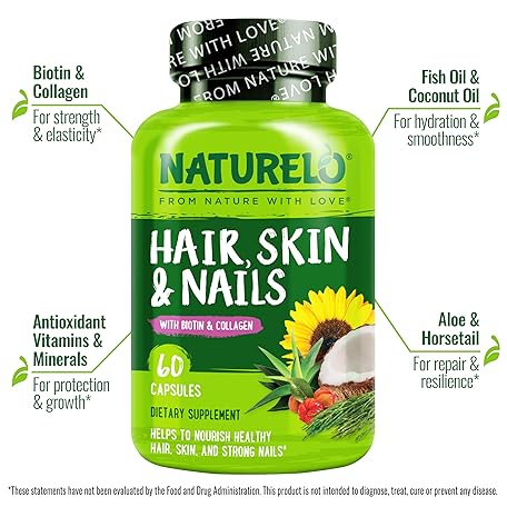 Sản phẩm NATURELO Hair, Skin and Nails Multivitamin - 5000 mcg Biotin, Collagen, Natural Vitamin E - Supplement for Healthy Skin, Hair Growth for Women and Men 60 Capsules đang được bán với giá ưu đãi là $27.1955 tại nước Mỹ.