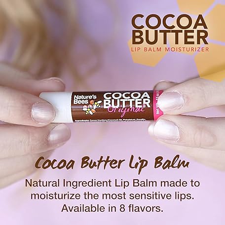 Thông tin sản phẩm Nature's Bees Cocoa Butter Lip Balm, Lip Care for Dry Lips, Made with Coconut Oil, Beeswax, Vitamin E, Aloe, and Shea Butter, 0.15 oz Each, 4 Flavors, Citrus, Coconut, Cherry, and Mint, 24 Pack