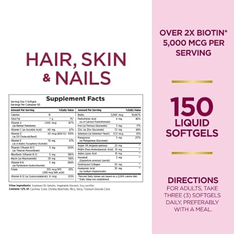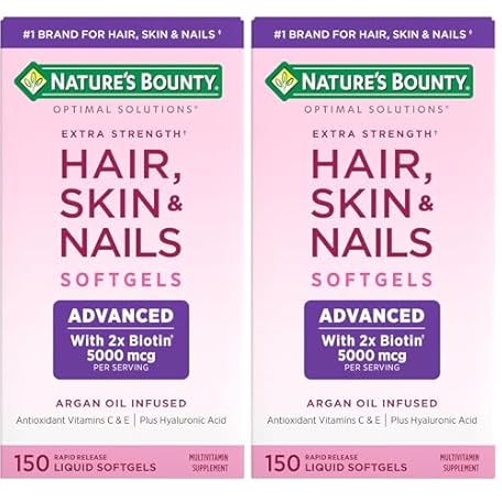 Thông tin sản phẩm Nature's Bounty Advanced Hair, Skin & Nails, Argan-Infused Vitamin Supplement with Biotin and Hyaluronic Acid, 150 Rapid Release Softgels (Pack of 2)