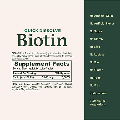 Thông tin sản phẩm Nature's Bounty Biotin, Supports Metabolism for Cellular Energy and Healthy Hair, Skin, and Nails, 5000 mcg, 60 Quick Dissolve Tablets
