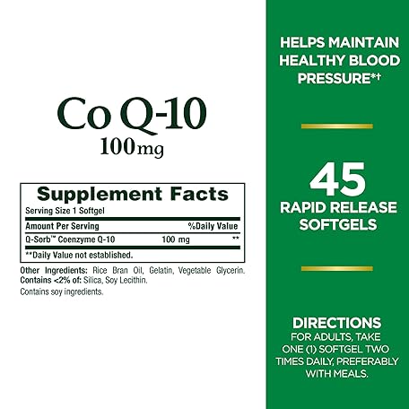 Thông tin sản phẩm Nature's Bounty CoQ10 100mg for Heart Health Support, Non-GMO Q-Sorb Coenzyme Q-10 Antioxidant Support and Cardiovascular Wellness, Dietary Supplement, Rapid Release Softgels, 45 ct