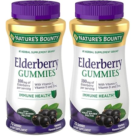 Nature's Bounty Elderberry Gummies, Dietary Supplement, Supports Immune Health, Contains Vitamin A, C, D, E and Zinc, 100 mg, 70 Gummies (Pack of 2)