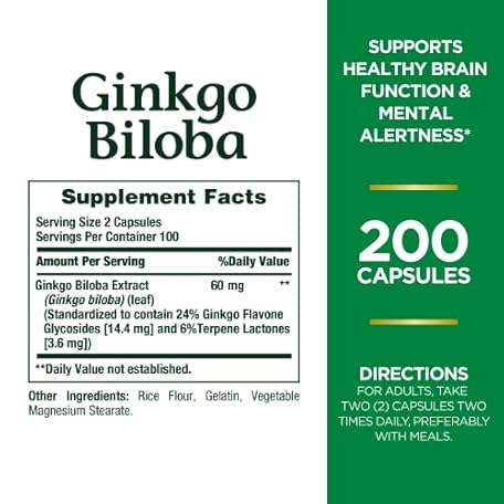 Sản phẩm Nature's Bounty Ginkgo Biloba 60 Mg, 200 Capsules (17243) (Pack of 2) đang được bán với giá ưu đãi là $14.9112 tại nước Mỹ.