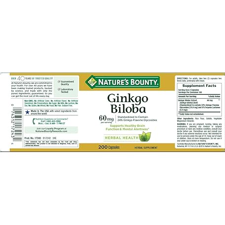 Sản phẩm Nature's Bounty Ginkgo Biloba 60mg Capsules, 200 Count (Pack of 2) đang được bán với giá ưu đãi là $32.6128 tại nước Mỹ.