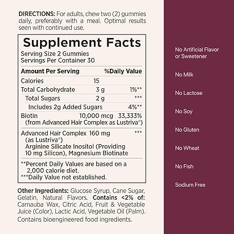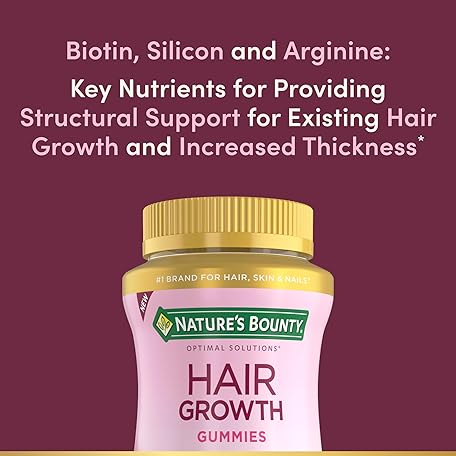 Nature’s Bounty Hair Growth Gummies for Supporting Thicker, Fuller Hair with Biotin, Silicon & Arginine, Peach Mango Flavor – Gluten Free, Contains No Lactose, Sodium or Fish, 60 Count/30 Servings