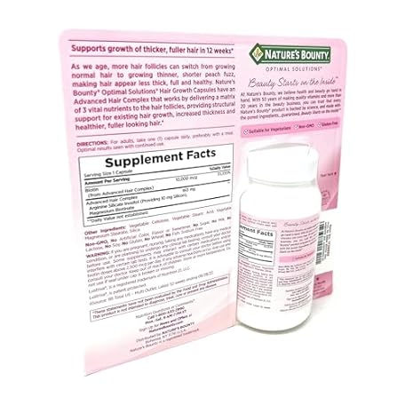 Thông tin sản phẩm Nature's Bounty Hair Growth Supplement, 1 Per Day, Clinically Shown to Support Thicker, Fuller Hair, with Biotin, Silicon & Arginine, 90 Capsules