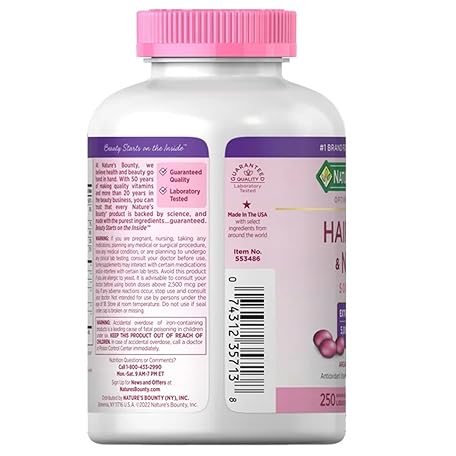Sản phẩm Nature's Bounty Hair Skin and Nails 5000 mcg of Biotin - 250 Coated Tablets Extra Strength đang được bán với giá ưu đãi là $21.7891 tại nước Mỹ.