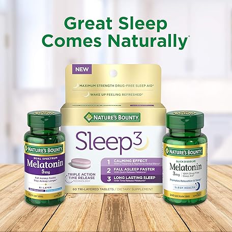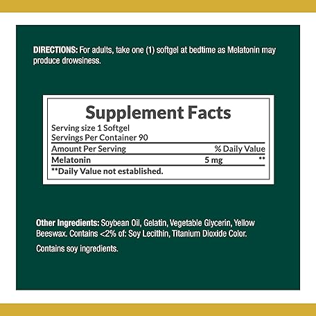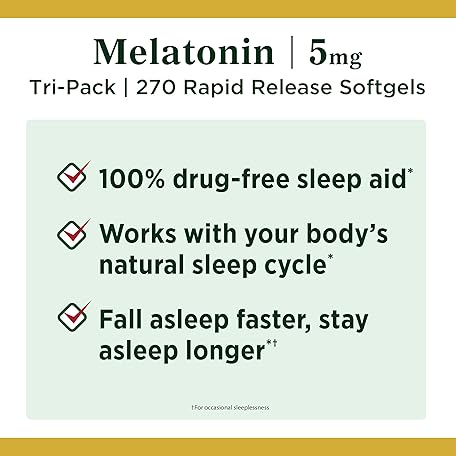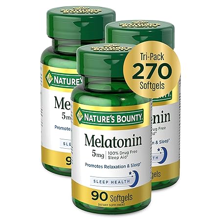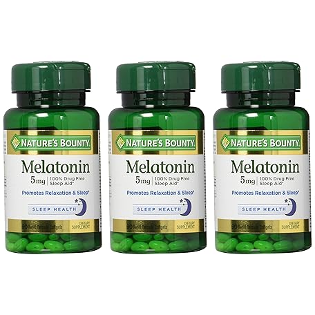 Thông tin sản phẩm Nature's Bounty Melatonin 100% Drug Free Sleep Aid, Dietary Supplement, Promotes Relaxation and Sleep Health, 5 mg, 90 Count, Pack of 3