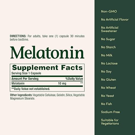 Thông tin sản phẩm Nature's Bounty Melatonin, Promotes Relaxation and Sleep Health, 10mg, Capsules, 60 Ct (2 Pack)