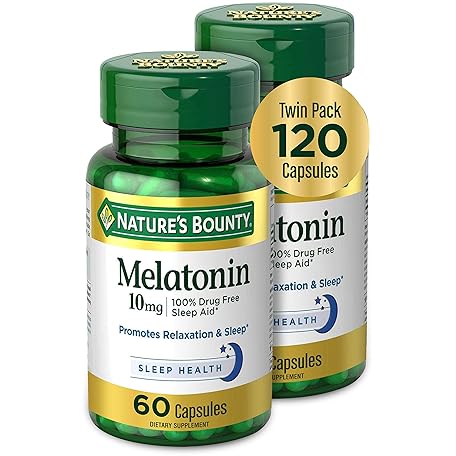 Sản phẩm Nature's Bounty Melatonin, Promotes Relaxation and Sleep Health, 10mg, Capsules, 60 Ct (2 Pack) đang được bán với giá ưu đãi là $15.1401 tại nước Mỹ.