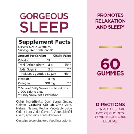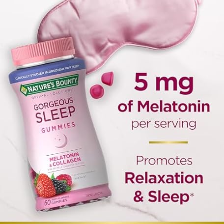 Thông tin sản phẩm Nature's Bounty Optimal Solutions Gorgeous Sleep Melatonin 5mg Gummies with Collagen, 60 Count, Assorted Fruit Flavors, 30 Total Servings