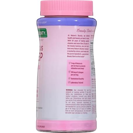 Thông tin sản phẩm Nature's Bounty Optimal Solutions Gorgeous Sleep Melatonin 5mg Gummies with Collagen, 60 Count, Assorted Fruit Flavors, 30 Total Servings (Pack of 3)