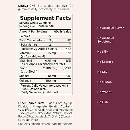 Thông tin sản phẩm Nature's Bounty Optimal Solutions Hair, Skin & Nails with Biotin and Collagen, Citrus-Flavored Gummies Vitamin Supplement, 2500 mcg, 80 Ct, 40 Total Servings