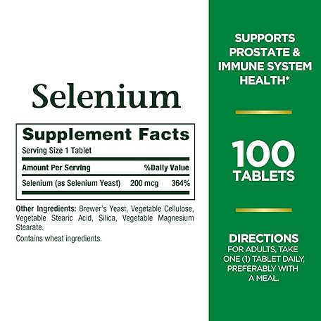 Thông tin sản phẩm Nature's Bounty Selenium, Supports Prostate and Immune System Health, 200 mcg, 100 Tablets